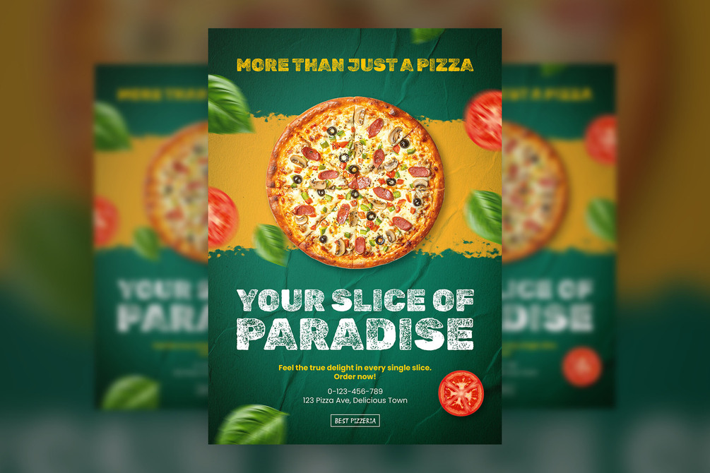 Stop waiting for customers to find you. Reach out with an irresistible offer. Get this Pizza Restaurant A4 Flyer Template today and watch your orders soar.