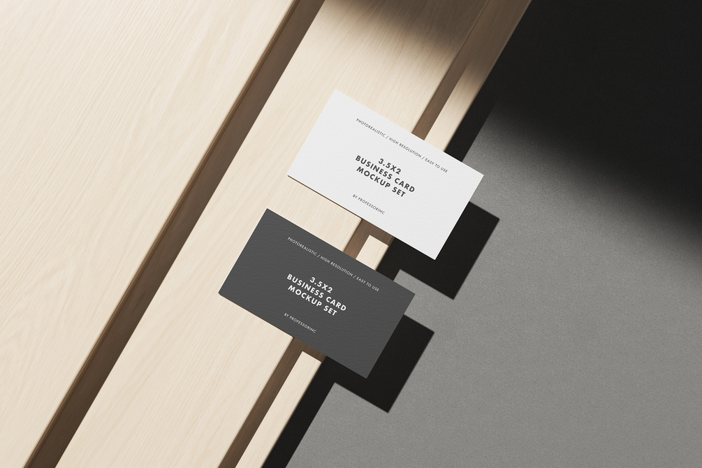 Whether you have light or dark designs, this mockup is versatile and can accommodate both, allowing you to accurately showcase how your business cards will appear in print. The realistic representation of this mockup will capture the attention of potential clients and partners, making it a powerful tool to promote your business. Don't miss out on the opportunity to make a strong impression with our 3.5x2 Business Card Mockup.