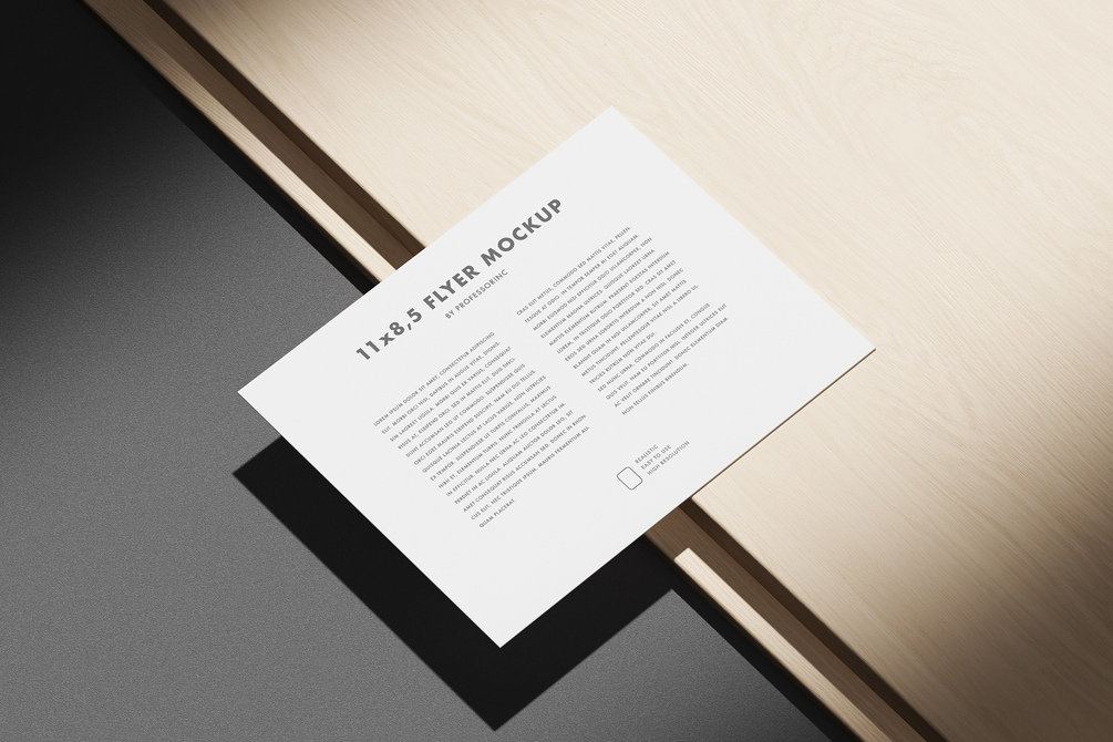Elevate your flyer designs with the 11x8.5 Flyer Mockup. Its easy-to-use smart object layers allow you to quickly replace the placeholder design with your own artwork, saving you time and effort. The high resolution of 4500x3000 px ensures that your designs will have a stunning level of detail, making them stand out from the crowd.