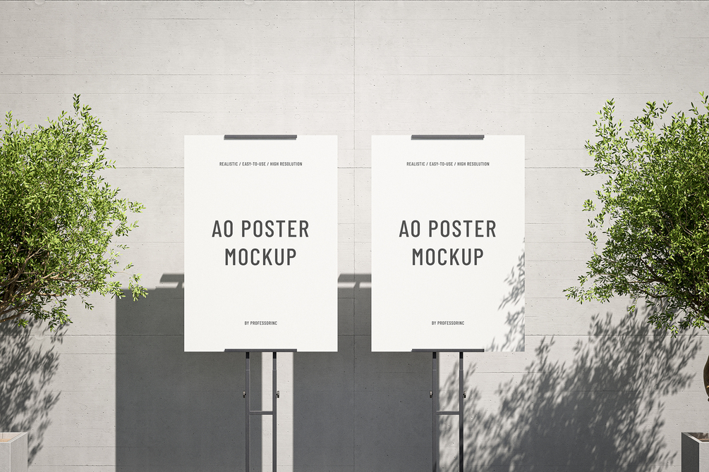 Two A0 posters with metal stand mockup