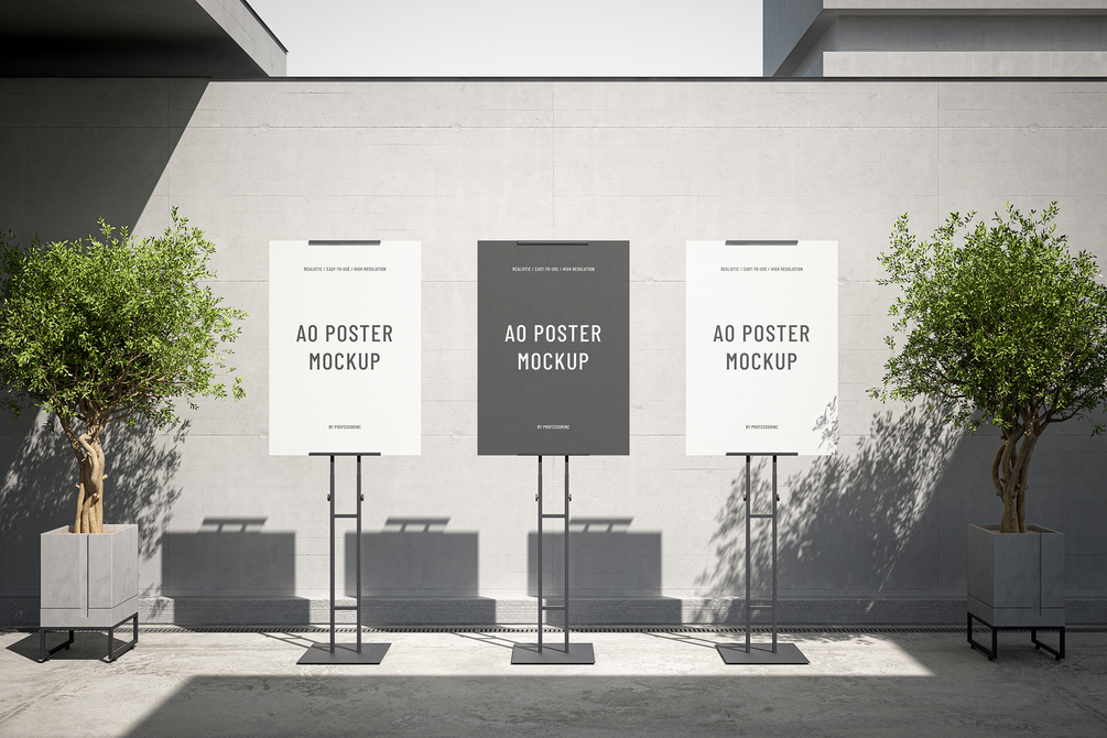 A0 Poster on the metal stand mockup set